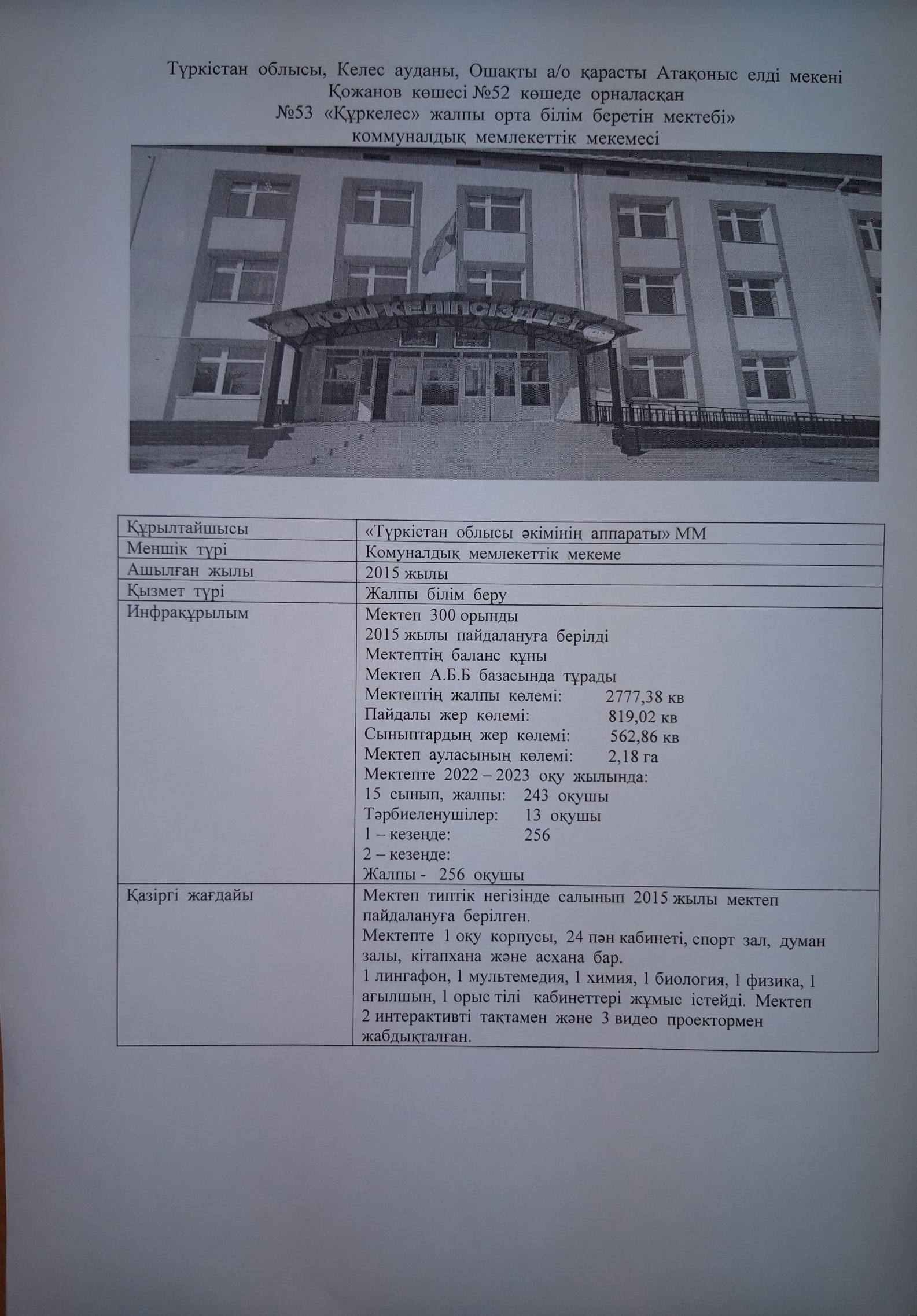 Түркістан облысы Келес ауданы №53 Құркелес жалпы орта мектебі